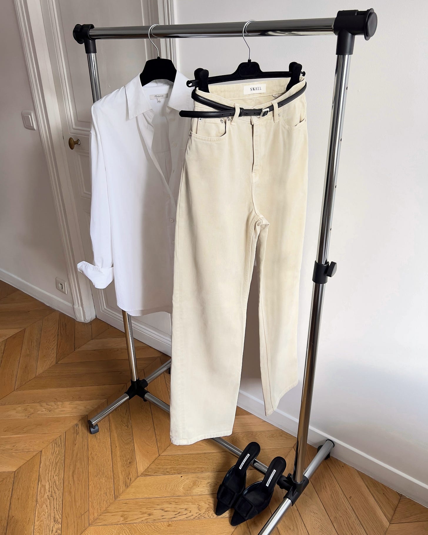 Consider keeping a few reliable outfit ideas on a rack - completely styled and ready to go. This will be a game changer on days when you’re having an outfit crisis or you don’t have enough time to get ready.